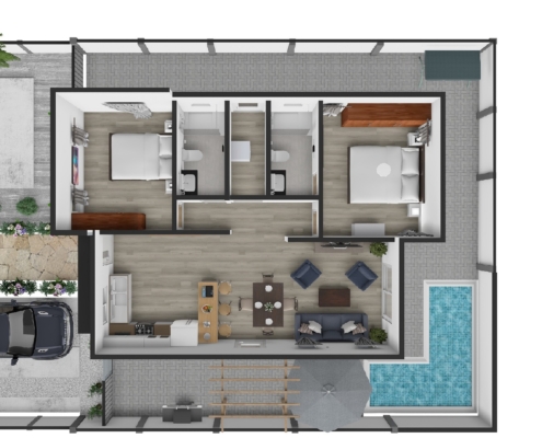 | Swimming pool | Included basic | Included – With fountain approx. 3m x 6m |